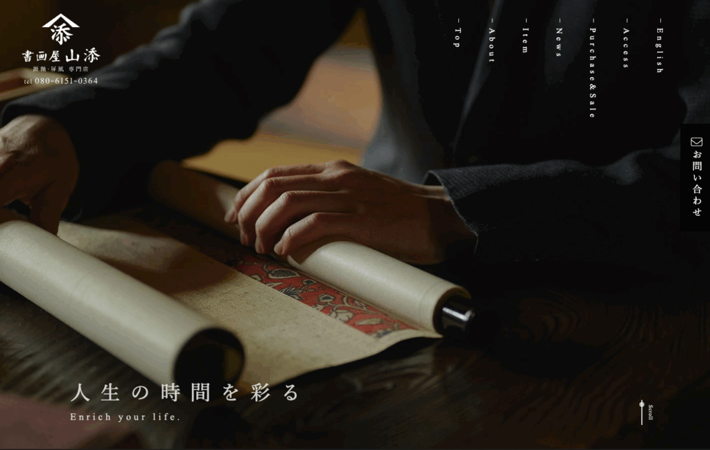 京都市東山区(京阪三条駅すぐ)で古美術品販売をされている書画屋山添様のホームページを作成しました。ぜひご覧ください!